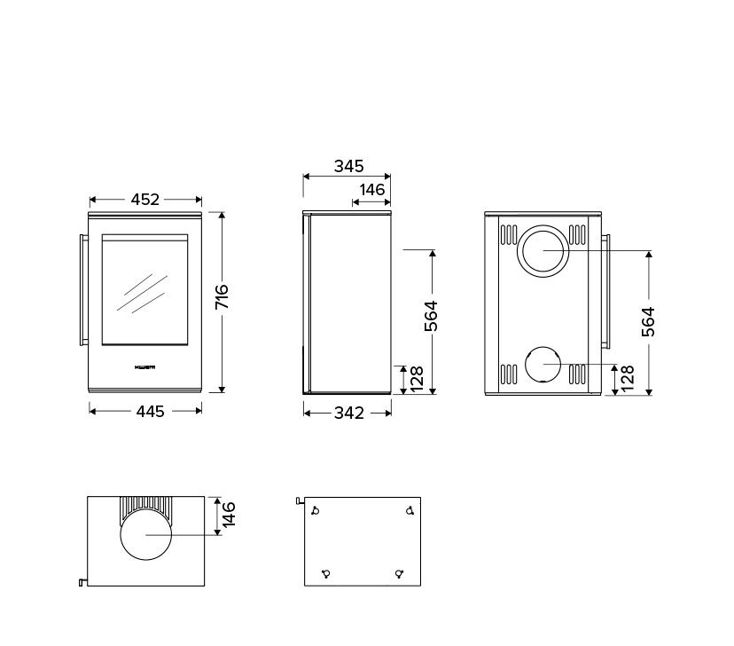 - Het nominale vermogen van 4,4 kW maakt deze kachel geschikt voor kleinere tot middelgrote ruimtes waar je gecontroleerde warmte wilt.